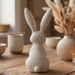 Add a touch of contemporary charm to your home with our Modern Minimalist 3D Printed Bunny Lamp. Moving away from traditional designs, this piece stands out with its eye-catching ribbed aesthetic and tall, elegant ears, making it look like a piece of modern art by day and a cozy light source by night.